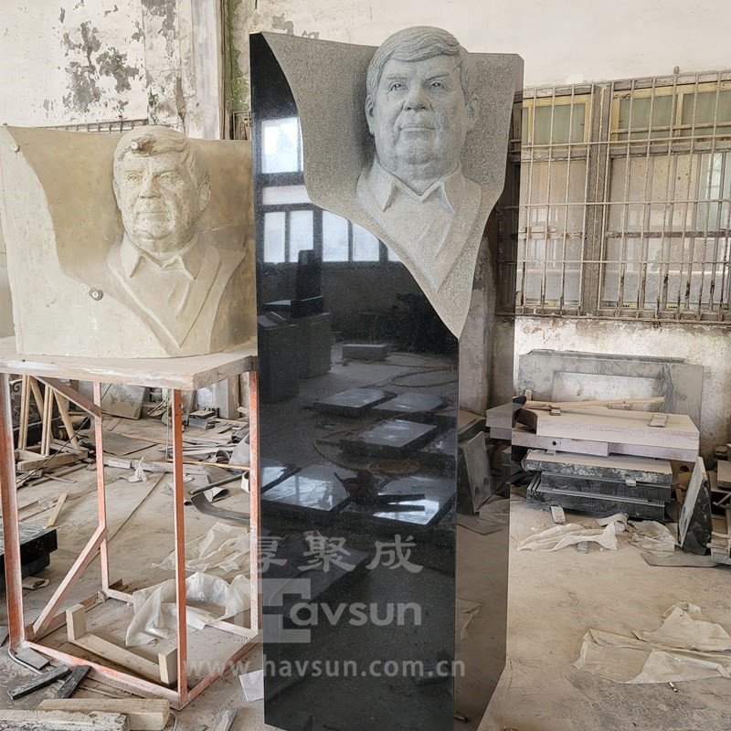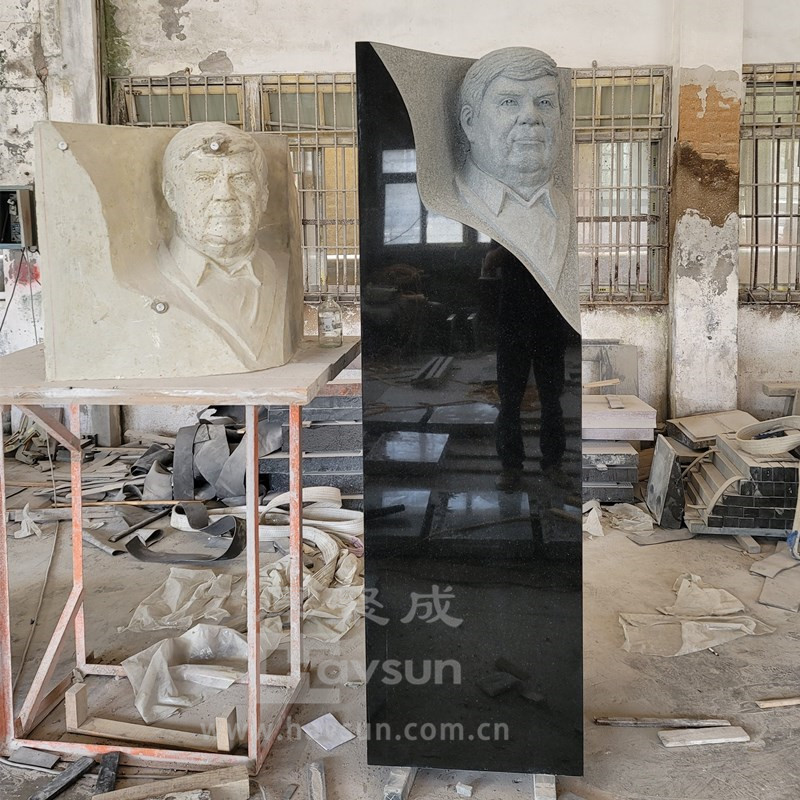 Black Granite Carved Human Memorial Head Statue Sculpture Monument
