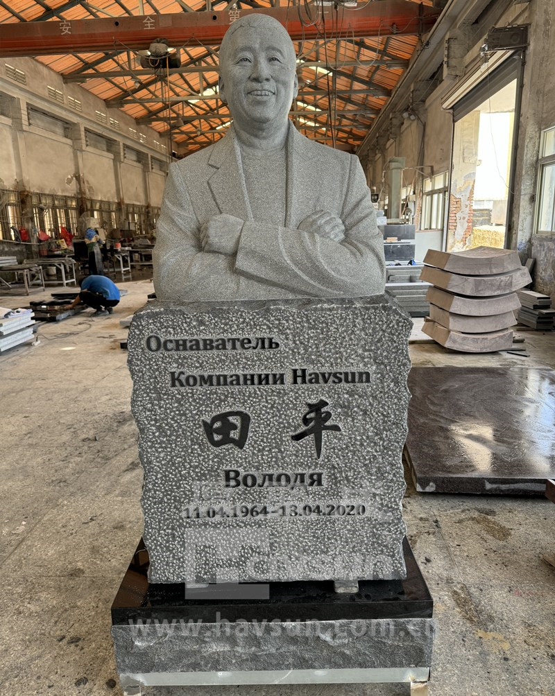 dark grey granite head to chest bust memorial monument sculpture