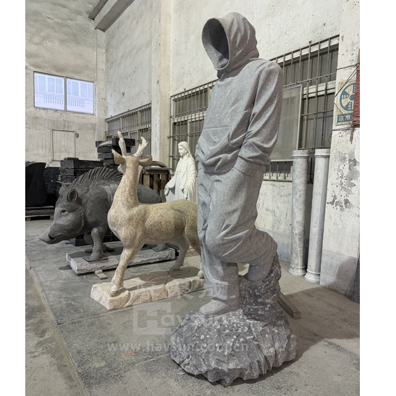 Life Size Granite Cool Boy Sportswear Human Statue Sculpture
